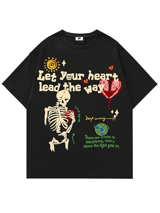 SXV 'Let Your Heart Lead The Way’ Printed Cool Aesthetic Oversized Baggy T-ShirtSXV ‘Let Your Heart Lead The Way’ Printed Cool Aesthetic Oversized Baggy T-Shirt